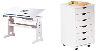 Inter Link Schülerschreibtisch Schreibtisch Arbeitstisch & Link Alpine Living Rollcontainer Bürocontainer Schubladenschrank Büroschrank Kiefer Massivholz Weiss lackiert