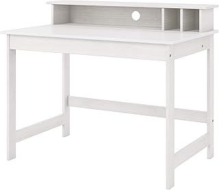 Inter Link Schreibtisch Arbeitstisch Homeoffice Schminktisch Kiefer Massivholz Weiss lackiert, 110 x 69 x 76/91 cm