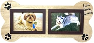 3MAZINGS Hunde-Bilderrahmen, 10,2 x 15,2 cm, Gedenkfoto-Collage für Hunde, Haustiere, Erinnerungsbilder Live Love Woof Knochenform, Holzpfoten