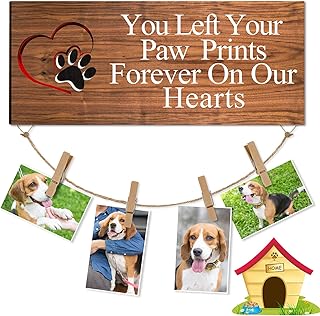 1WANYUE Bilderrahmen für Haustiere, 10.2 x 15.2 cm, Hundemotiv mit Pfotenabdrücken, Bilderrahmen für Tierverlust, Katzen- und Hunde-Gedenkgeschenke, personalisierter Bilderrahmen (340 x 140 mm)