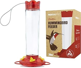 MEKKAPRO Outdoor Kolibri Futterstation aus Glas zum Aufhängen 5 Nektar Futterstationen Hellrot Hinterhof-Futterstation (20 oz)