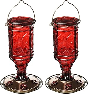 More Birds Kolibri-Futterstation im Vintage-Stil, Rot, Antik-Glasflasche, 590 ml, Nektar Kapazität pro Futterstation, 2 Stück