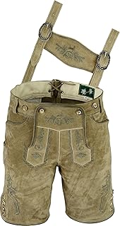 Edle Lederhose mit Träger, Trachten Lederhose Herren kurz, Damen Trachtenlederhose im Antik Wildleder Echtleder Mattgrau- mit grüner Stickerei