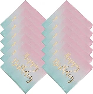 BESTZY Servietten Geburtstag 48 Stück Happy Birthday Servietten Pinke Einweg Happy Birthday servietten für Geburtstag Party Kindergeburtstag Dekoration