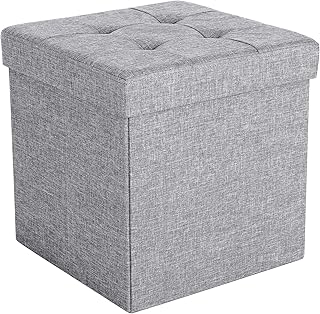 SONGMICS 38 cm Sitzbank Sitzhocker mit Stauraum faltbar Sitzwürfel Fußablage leinen LSF82GYX