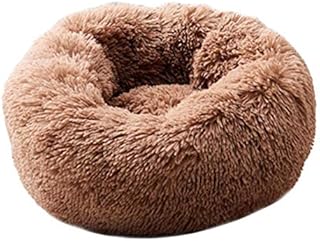 Enjamoy Plüsch-Donut-Hundebett, beruhigendes rundes Hunde-/Katzenbett, weich und flauschig, Kuschelkissen, selbstwärmend, Welpenbetten, maschinenwaschbar, braun, 70 cm