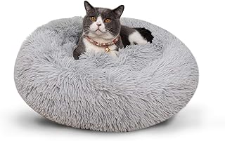 Nobrands flauschiges Katzenbett, rund, weiches Plüsch, Höhle mit Kapuze, Katzenbett, für den Winter, warm, Schlafkissen, rutschfest, maschinenwaschbar, für Katzen und Welpen