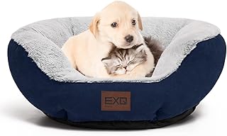 EXQ Home Weiches, warmes Katzenbett für Innenräume, flauschiges beruhigendes mit rutschfester Unterseite, Plüsch, rund, kleine Hunde, 50,8 cm, maschinenwaschbar, Hundebett (Marineblau,8 cm)