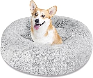 Beruhigendes Hundebett Katzenbett, Anti-Angst, Donut-Hundebett, maschinenwaschbar, rundes Haustierbett, bequemes Kunstfell-Plüsch, für kleine und mittelgroße Hunde Katzen (58,4 cm/76,2 cm/91,4 cm)