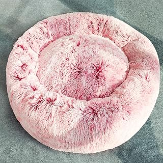 Hundebett für kleine und mittelgroße Hunde, rund, flauschig, Donut-Hundebett, maschinenwaschbar mit Reißverschluss, wärmend, bequem, weiches Haustierbett, Plüsch-Katzenbett (76,2 cm, Rosa)