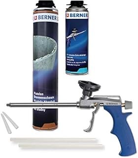 1 x Berner Brunnen-Schaum 1-K Pu-Pistolenschaum 750ml + 1 x Berner Schaum-Pistole + 1 x Pu-Schaumentferner 500ml - Brunnen-Schaum, Fensterbänke, Anschlussfugen, Kanal-Brunnen-Schächte!