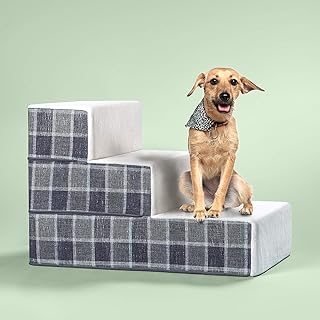 Zinus Cozy Pet Stairs/Pet Ramp/Pet Ladder/Grey Checked, Medium