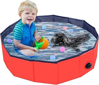 Faltbarer Hundepool, Haustier Faltbarer Swimmingpool, Planschbecken Hundebadewanne Swimmingpool für Hunde, Wasserteich Pool Kinderbecken zum Haustiere Schwimmen und Baden im Freien, Rot(80 x 20cm)