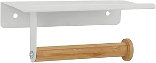 Spirella WC Rollenhalter"Tarek" Bambus Toilettenpapierhalter Klopapierhalter mit Smartphone Ablage zum kleben oder bohren Weiß