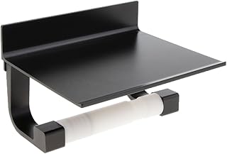 Edelstahl WC Papier Halter Toilettenpapierhalter Klopapierhalter Rollenhalter Ohne Bohren mit Ablage - Schwarz