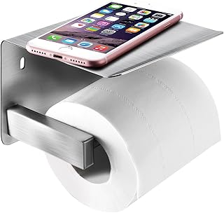 qobobo® V2A Edelstahl Toilettenpapierhalter Wandbefestigung , Rollenhalter / Papierhalter für WC Toilette Papier Halter mit Ablage z.B. Handy, 2 Befestigungsmöglichkeiten : Bohren oder 3M Kleben