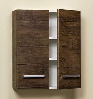 Quentis Badschrank, Breite 60 cm, Zwei Türen, Holzdekor antik, Lieferung montiert. Passend zu den Badmöbeln der Serien ZENO, Genua & Serena