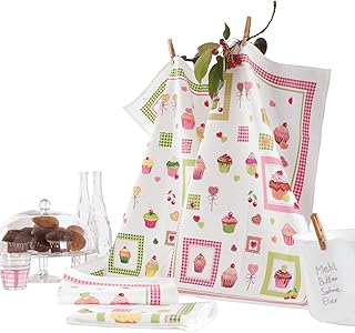Erwin Müller Geschirrtuch, Küchentuch 4er-Pack Muffin grün/rosa Größe 50x70 cm - saugstark, strapazierfähig, 100% Baumwolle
