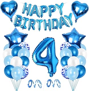 Bluelves Geburtstagsdeko Junge 4 Jahr,4 Jahr Dekoration Blau,folienballon 4,Luftballon 4 Geburtstag,Ballon 4 Geburtstag,4 Geburtstag Deko,Blau 4 deko Junge Geburtstag,Geburtstag Deko Junge 4 Jahr