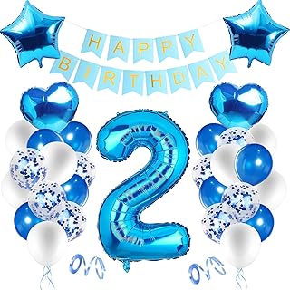 Geburtstagsdeko Jungen 2 Jahr,Luftballon 2. Geburtstag Blau,Happy Birthday Dekoration Zahl,Nummerndekoration,Luftballon 2. Geburtstag Junge Deko,Folienballon 2,Jahr Geburtstag Dekoration mit Banner