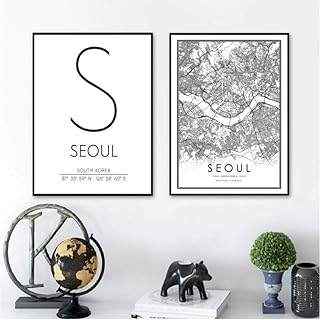 ARTTONIT Seoul Koordinaten Korea Stadtplan Drucke Schwarz-Weiß-Reiseplakat Koreanische Moderne Wandkunst Bilder Leinwand Malerei Wohnkultur 40x60cmx2 ungerahmt