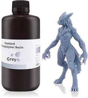 ELEGOO 3D Drucker Resin auf Pflanzlicher Basis mit Extrem Geringem Geruch und Hoher Präzision, 405 nm UV Rapid Photopolymerharz, Schnelle Aushärtung Harz für Resin 3D Drucker Grau 1000g
