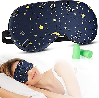 Againcare Schlafmaske für Frauen Kinder Herren, Schlafbrille mit Nachtmaske Verstellbarem Riemen, Sleep Mask mit Ohrstöpseln und Tragbare Tasche, Reisen, Nickerchen, Schichtarbeit - Blaue Sterne