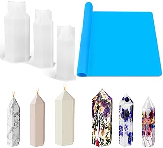 3 Stück Harzformen mit Silikonmatte, FineGood Kerzenformen DIY Kristallharzform Epoxidharz Kit Silikonformen für Harzgießen