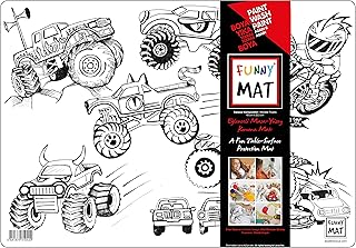 Funny Mat anmalen, abwaschen und wiederverwenden - Tischset für Kinder - Malunterlage, Ausmalbild, Schreibtischunterlage, Bastelunterlage - 48 x 33,5 cm (Monster Truck)